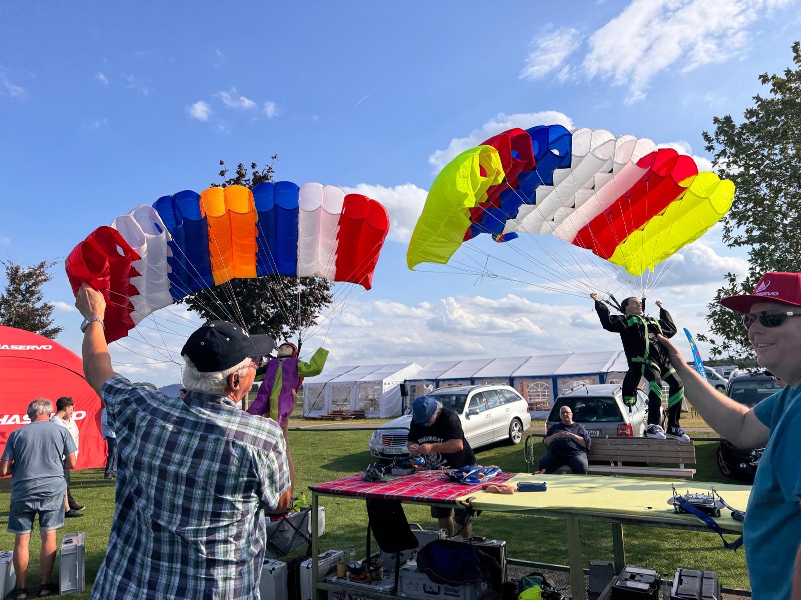 Vandaag hebben we de workshop gehouden in Millingen aan de Rijn. Fantastisch opgevangen door de modelvliegclub Phoenix. Catering, muziek alles was aanwezig en tot in de puntjes verzorgt. Na de opening om 11:00 zijn al snel de eerste sprongen gemaakt. Een groot aantal springers hebben hun parachutisten weer eens goed kunnen proberen. Het weer was fantastisch. Weinig wind en strak blauwe lucht. Mooier konden we het niet hebben. In het gras naast het veld lag onze trainingsstip en die is vandaag een aantal malen getroffen. Al met al hebben we vandaag bijna 180 sprongen kunnen maken. Na het opruimen zijn […]
